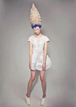 Couture Fragile handmade dress, made completely out of yarn, for Wella trend vision Award.