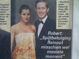 Royal Premiere Nova Zembla, Leading man Robert de Hoog with his own leading Lady Laura, wearing Dorhout Mees.