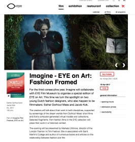 Esther Louise Dorhout Mees will be a key note speaker at the EYE Film Museum. Regarding her work as a High end Conceptual fashion Designer at Paris Fashion Week, as well as being a film maker and Director.